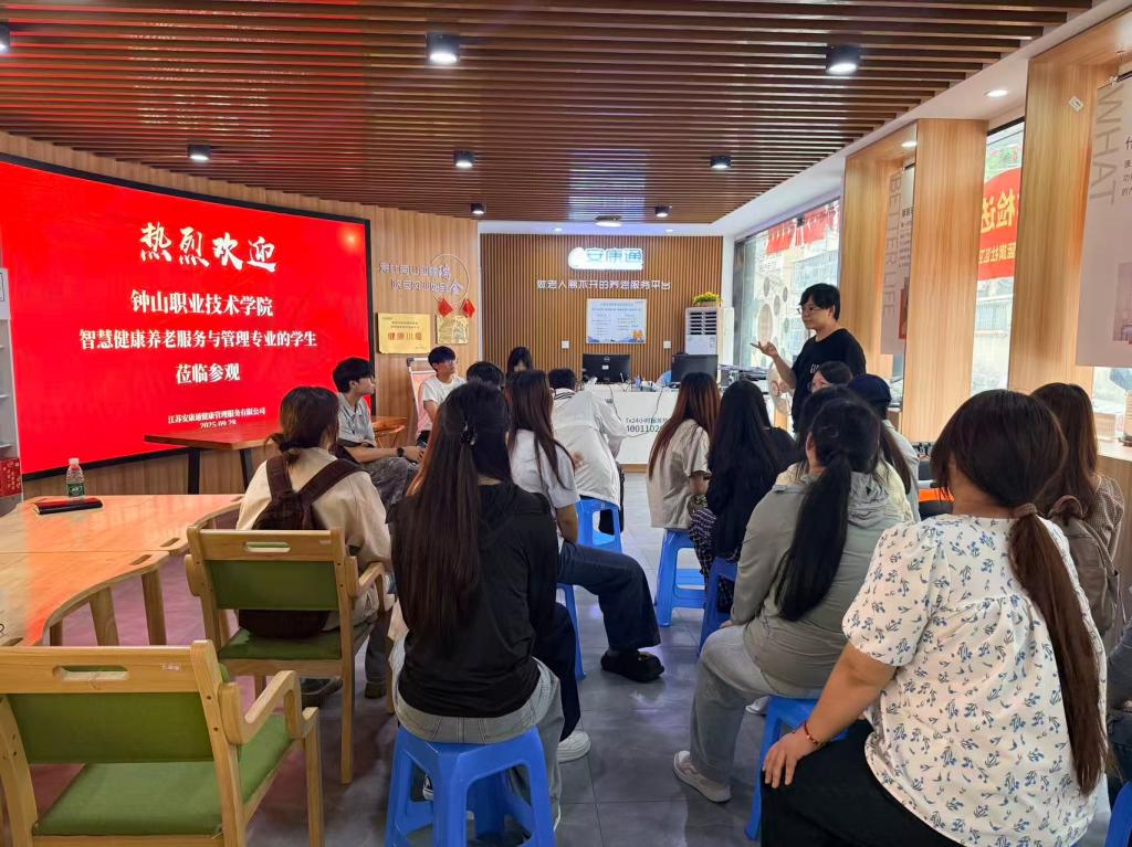 在南京市中心医院医养中心和安康通健康管理有限公司,师生们参观了医疗区、康复训练室、养老居住区等功能区域,详细了解医养结合的服务流程与管理机制,对“医疗+养老”一体化服务模式有了更直观、更系统的认识,切实感受到科技为居家养老带来的便利与安全保障。正值中秋佳节来临之际,师生们跟随社区网格员走进老人家中,开展慰问活动。大家与老人亲切交谈,倾听他们的生活故事,了解他们的健康与照护需求。一句句温暖的问候,一次次耐心的倾听,拉近了同学们与老人的距离,也让同学们更加理解“用心服务”在养老工作中的分量。